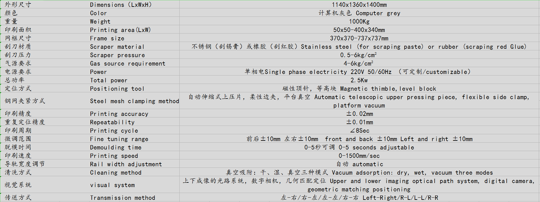 實現各種尺寸網框的印刷,並可實現在生產過程中的快速更換機種。