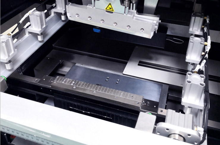 可拆卸,可編程的柔性側夾裝置,針對軟板,彎曲變形的PCB,進行獨特的頂部壓平,通過軟件編程可自動伸縮,不影響錫膏厚度。